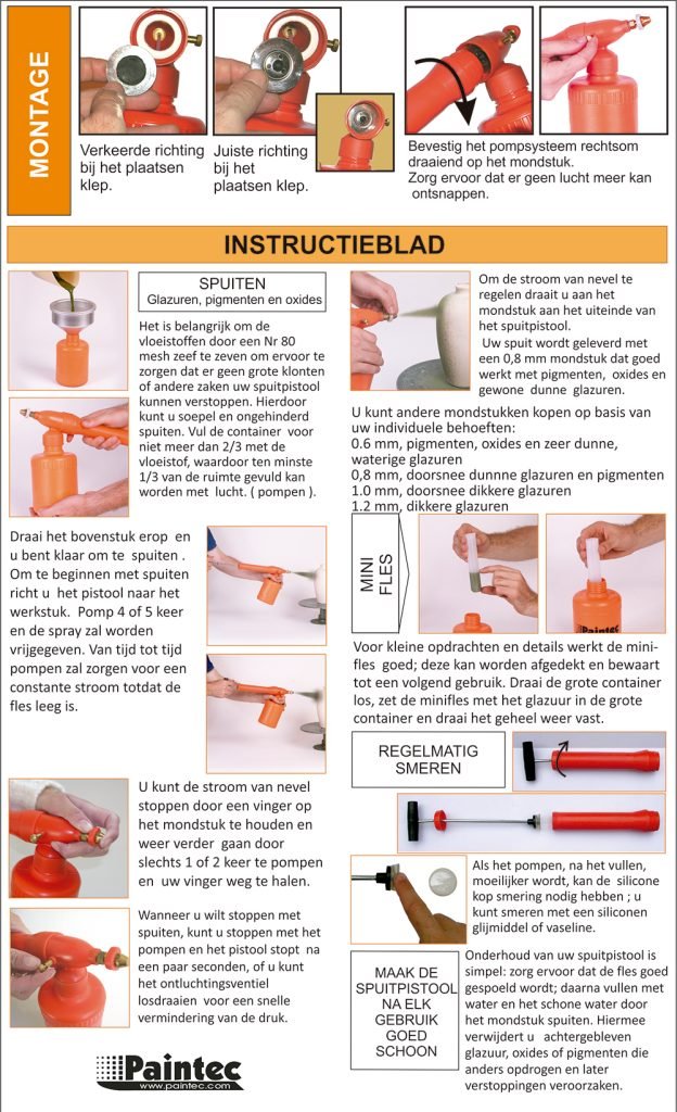 Instructies voor Paintec Glasuurhandspuit